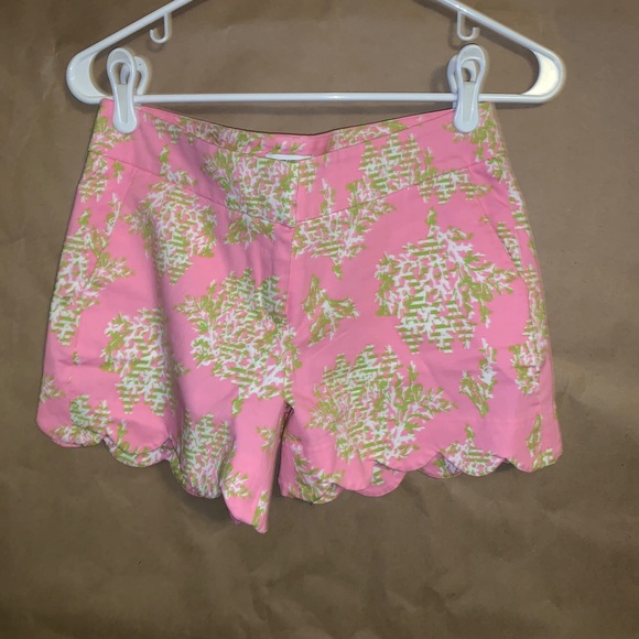 Pink, green, & white scalloped shorts, never worn. $18 separate or $25 for these and the other scalloped pair.