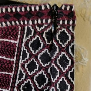 Black and dark red patterned shorts with some muted silver beads, have a bit of stretch to them , flattering structured fit.