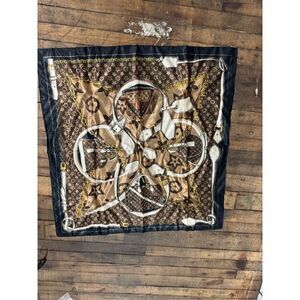 Beautiful multi use square scarf (silk /satin like) black border clover letter leather ware design w:4 diffrent iconic shaped handbags speedy baudaulere duffel tote satchel crossbody handbag pocketbook) viral trendy- can be used as a headband/wrap, twilly handbag handle wrap shirt skirt possibilitys are endless!!!