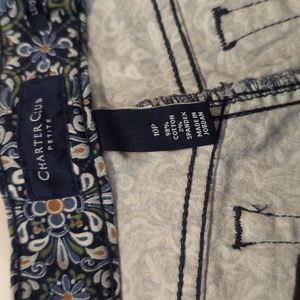 blue patterned pants with a touch of white and orange. Supper comfy