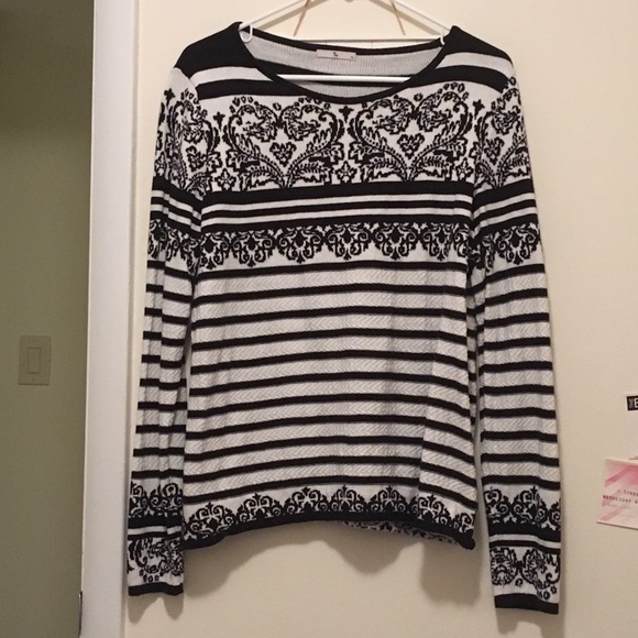 Striped and swirled pattern, black and white sweater, light but warm