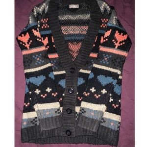 semi-thick and warm button down sweater // gently pre-loved condition: light wear, with some pilling // Size small and could fit XS as well