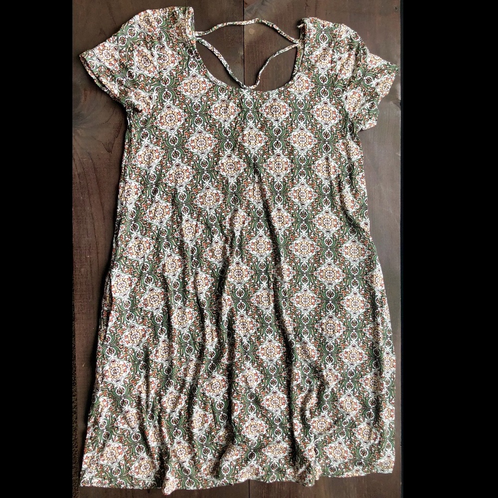 Patterned swing dress. Strappy detail upper back. Worn once!