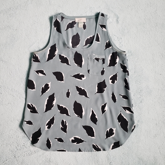 Graphic stone blue tank top, flowy and lightweight but not see through. Perfect with white capris and wedges for a night out!