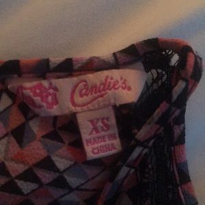 Geometric pattern with black, white, blue, pink, red, coral, and gray // has keyhole back // lace detailing // fits like a small but also XS // perfect for business casual ❤️