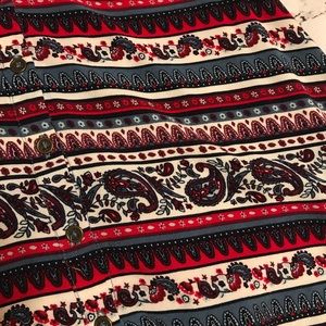 Cute tank top goes great with blue or black jeans only selling because I don’t fit in it anymore. Great condition