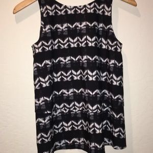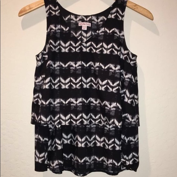 Super cute flowy top! 2 layers. Black and white. It says size xs but it's a little big, would probably fit a S-M best.