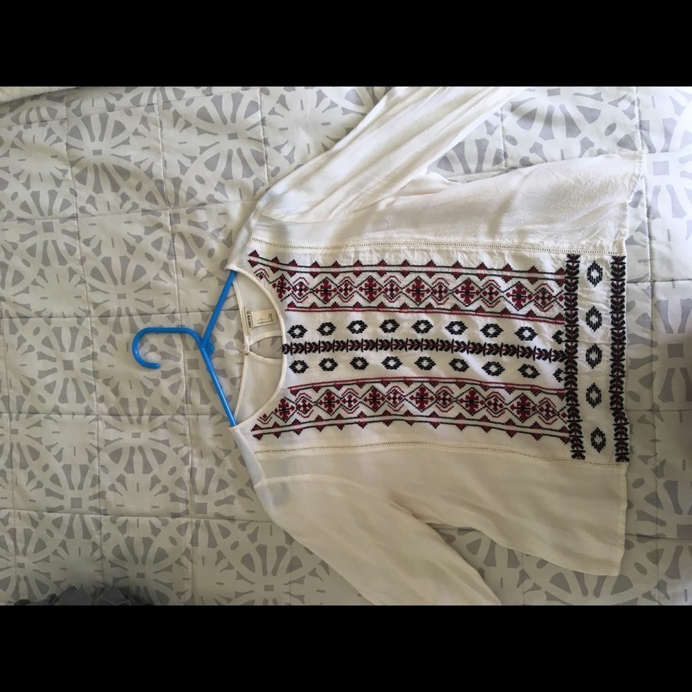 Has beautiful Tribal patterns of of red and black, cute arm cuffs and a tiny opening just below the neck. Make an offer!