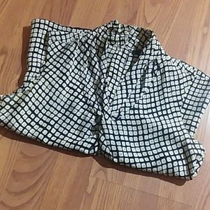 Patterned top with cut off sleeves, faux collar, and working button detailing up the back