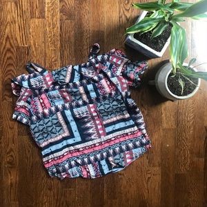 Red, white and blue off the shoulder patterned top