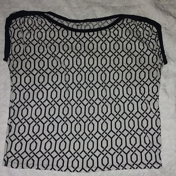 Navy and white link patterns short sleeved top