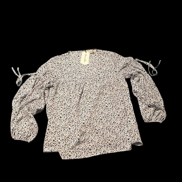 Bubble sleeves Synced at wrist Should tie detail No stretch V cut neckline