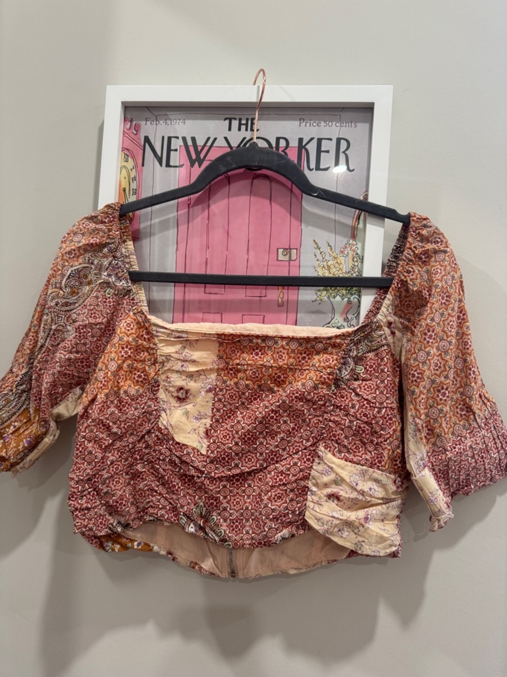 Cropped pattern blouse, zips at the back