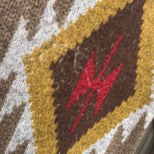 3/4 sleeve, patterned tunic. There’s a little wear in the front (seen in photo) but besides that it is still a wonderful top.
