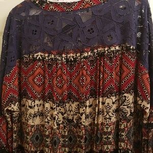 Gorgeous top with criss-cross and lace details! Has a hi-low hem that makes it versatile to wear with leggings.