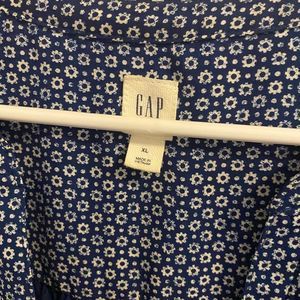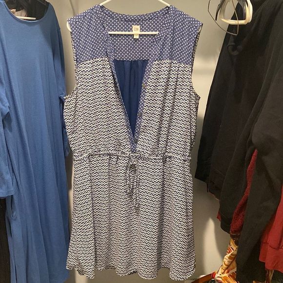 This is a super cute blue flower pattern dress. The dress has pockets and buttons that button up in front. Worn just a few times!