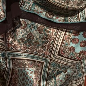 Elevate your style with this chic patterned sleeveless top. Size Large. Featuring a blend of brown and blue hues, it's perfect for any occasion. 100% polyester. Gorgeous top to dress up a pair of jean shorts for the summer or jeans with a cute pair of sandals. Unique beautiful pattern.