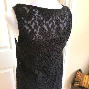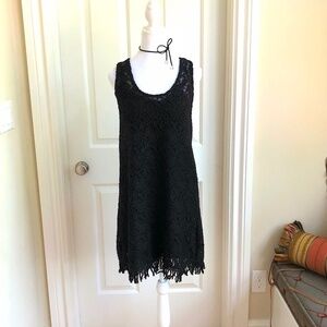 Patterson J. Kincaid Black Floral Mesh Sleeveless Dress w Fringe Hem & Slip (M)
