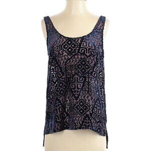 Patterson J. Kincaid Velvet Boho Brocade Print Open Back Sheer Blouse Size S