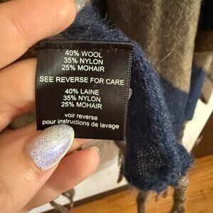 Patterson J. Kincaid | Wool / Mohair Blend Brown Navy Striped Shawl Wrap Sweater