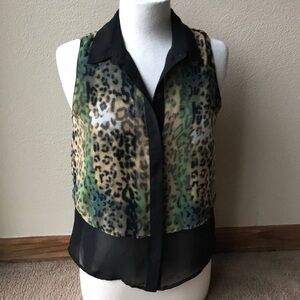 PJK Patterson J Kincaid sleeveless double layer sheer button up size XS original retail $128