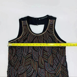 Excellent condition A-line beaded poly dress. 17.5” pit to pit. 32” top of shoulder to hem. Keyhole at back. Very roaring 20s or flapper!