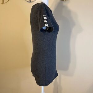 Patty Boutik Gray Tee w V Neck and Decorative Buttons Size Small