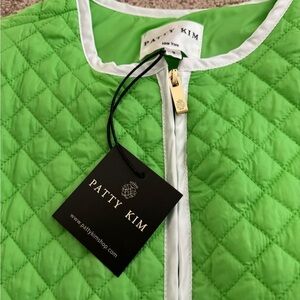 Patty Kim- NWT Neon Green Quilted Chanel Cap Sleeve Zipper Pocketed Vest Jacket