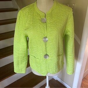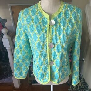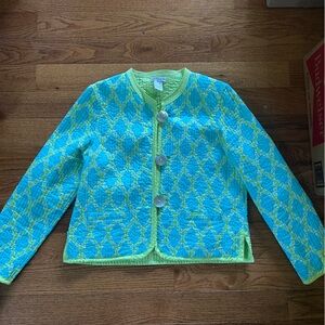 Patty Kim Size Medium Green & Blue Geometric Quilted Cotton Reversible Jacket