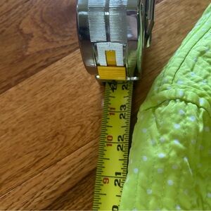 Bright blue and yellow quilted jacket with large buttons. Sleeve length is 23” (see exact measurements in pics)