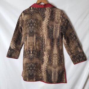 Patty Kim Snakeskin and Red Long Quilted Tapestry Jacket sz Small