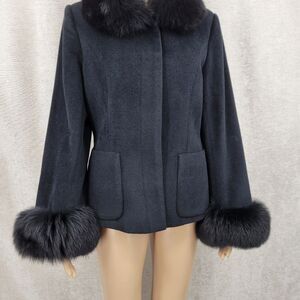 Patty Lewis Vintage Cashmere Wool Elegant Black Fur Trimmed Women's Jacket Coat