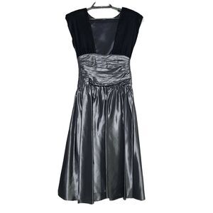 Patty O'Neil Vintage Party Dress 5 6 Black Gray Velvet Prom Formal Ruched Waist