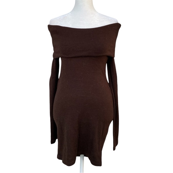 PattyBoutik Brown Off The Shoulder Bodycon Sweater Mini Dress