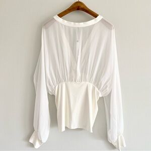 PattyBoutik Cream Sheer V-Neck Top Size Large NWT