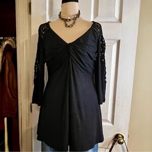 PattyBoutik Whimsygoth Black Grunge Vampire Witchy Ruched Crochet Tunic Top XL