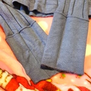 grayish/blue color. verrryyy flattering and a spot on dupe for a top that Free People has 😊 can be buttoned/unbuttoned based on your mood 😉
