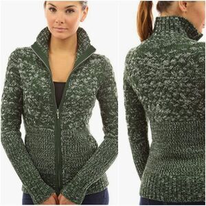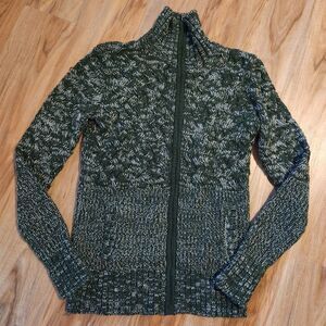🩵PattyBoutik Green Knit Zippered Mock Neck Sweater Large