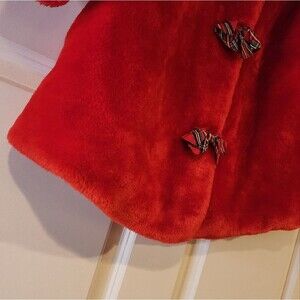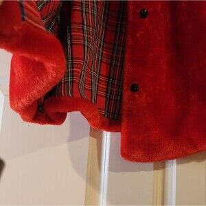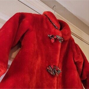 PattyCakes red faux fur plaid lined coat size 4. Lining has small tear but doesn't affect coat wear