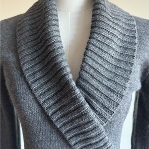 Pattyboutik Sweater Womens S Gray Shawl Neck Lace Up Sweater EXCELLENT cond!