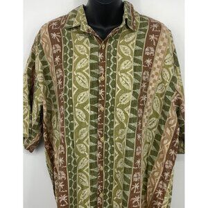 Pau Hana Hawaii Men XL Extra Large Short Sleeve Button Shirt Tropical Green Red