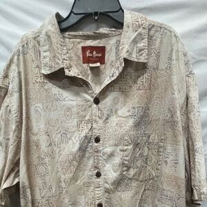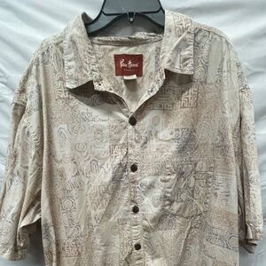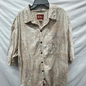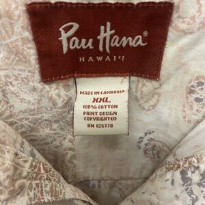 Pau Hana Hawaiian Tropical Beige Rust Button Down Shirt Men Size XXL
