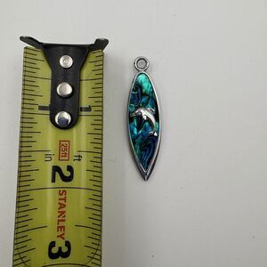 Paua Abalone Dolphin Pendant Blue Silver Toned