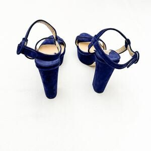 Paul Andrew Blue Suede Strappy Block High Heel Platform Sandal Size 39.5 Italy