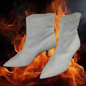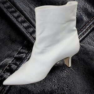 Paul Andrew Mangold Handmade Italy White Leather Bootie, Size 36.5 (US 6.5)