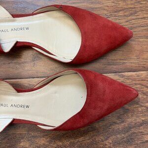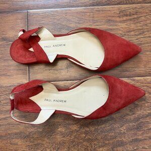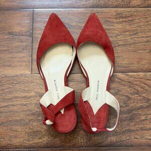 Paul Andrew Rhea 15 Red Suede Slingback Flats โ Luxury, Pointed Toe, Size 8