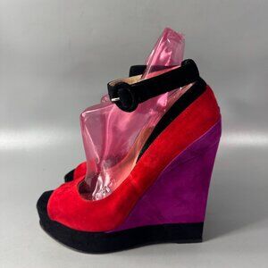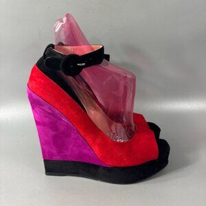 Paul Andrew ‘Whitney’ Color Block Suede Wedge Sandals, Size 36.5