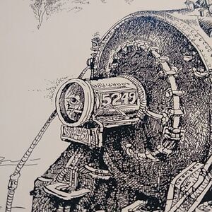 Explore the intricate details of this vintage train art print. Perfect for adding a touch of history to your home decor.