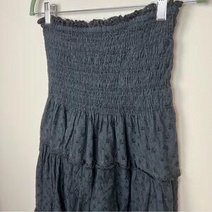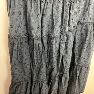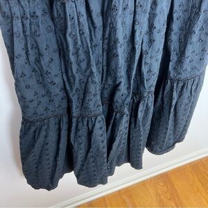 Black smocked skirt with eyelet detail. Size 14 but Measurements are included in photos. Fits more like a size small/medium. Tiered eyelet