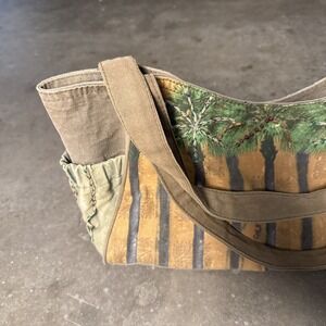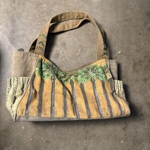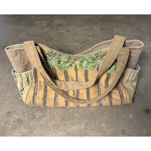 Paul Brent Large Canvas Beach Tote Bag Beaded Zip Palm Tree Jute Braid Stitched
